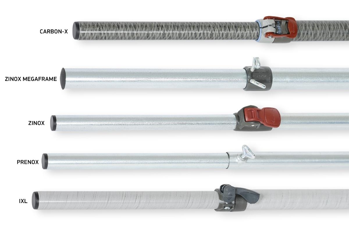 Zinox stålstellet er også brugbart til fastligger- og sæsoncamping. Stellet består af samme materiale som MegaFrame, men er smallere i diameter og har hjørner og kryds i støbt plast. Zinox stålrørsstellet er specielt velegnet til camping i ydersæsonen, og derfor også det stel, du finder i vores Universal og vintertelte.