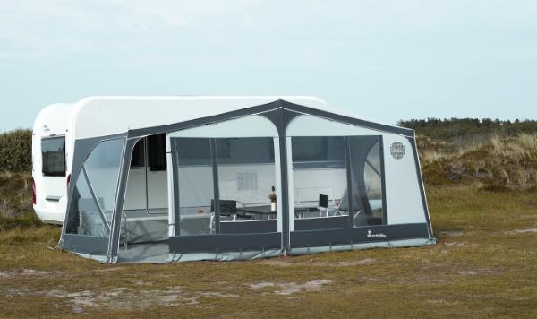 Frontstykkerne har lynlåse, som passer med den lynlås, der er syet i solsejlet. Hvis du lyner fronten ned, har du også mulighed for at lave en verandaløsning. Frontstykkerne har to indgangsdøre og store vinduespartier.