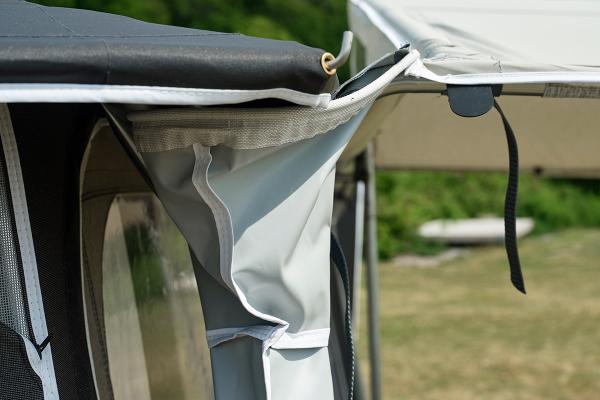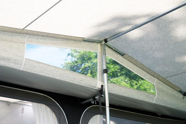 Aurinkokatoksessa on ainutlaatuinen yläpuolinen takapaneeli, joka varmistaa aurinkokatoksen hyvän korkeuden, vaikka se asennettaisiin Penta-etutelttaan räystään alle. Jotta aurinkokatoksen alle saataisiin hyvin valoa, takapaneelissa on kaksi yläikkunaa.