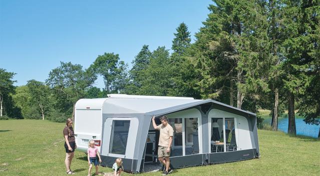 Joustava asuntovaunun ilmaetuteltta kahdessa koossa. Täydellinen valinta sinulle, joka haluat helpon ratkaisun leirintälomallesi.