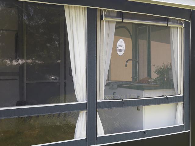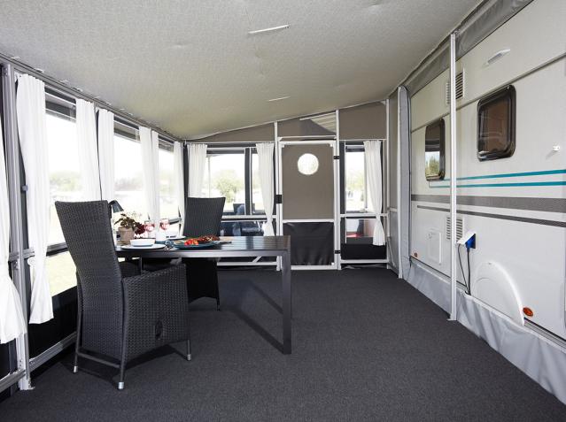 Tarvitsemiesi tilojen koon pohjalta voit valita esim. VILLA 300:n, jonka syvyys on 3 metriä, tai VILLA 370:n, jonka syvyys on 3,7 metriä. Valittavanasi on myös 5 eri pituutta: 550–950 cm, jotta saat juuri sellaisen, joka sopii niin matkailuvaunullesi kuin leirintäalueelle, jonne haluat majoittua.
