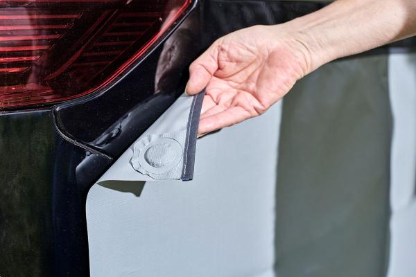 Retkeilyauton kestävä helmakangas estää häiritsevän kylmän vedon ajoneuvon alla. Helmakangas tiivistää tehokkaasti pyörien välin ja estää kylmää ilmaa virtaamasta markiisin alle.