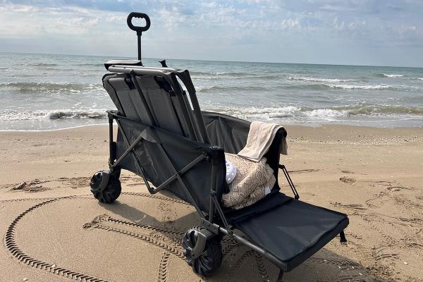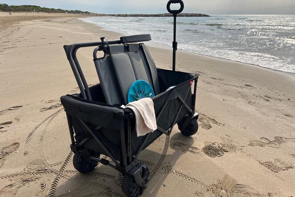 Beach Trolley helpottaa retkeilyvarusteiden, rantatuolien, kylmälaukun ja ostosten kuljettamista – erityisesti silloin, kun haluat välttää turhia edestakaisia matkoja. Sen suuri kantokapasiteetti, kestävä rakenne ja tukevat renkaat tekevät siitä erinomaisen apuvälineen retkelle. Säädettävä kahva antaa hyvän hallinnan ja tekee kärrystä vaivattoman vetää – myös täyteen lastattuna. Suuret kuvioidut renkaat varmistavat, että kärry sujuvasti liikkuu epätasaisessa maastossa, kuten nurmikolla, soralla ja hiekalla.