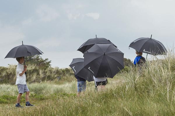 Paras ystäväsi sateessa. Kaunis, 106 cm halkaisijaltaan oleva musta sateenvarjo on täydellinen sadevarustus camping-lomalle.