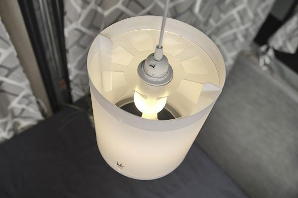 Litteä lampunvarjostin. Travelight on pakattuna täysin litteä, joten se ei vie tilaa matkatavaroissa.