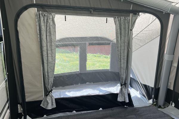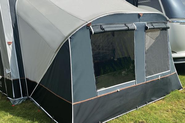 Si tu veux utiliser l'annexe comme espace de couchage supplémentaire, elle est conçue avec des moustiquaires et des volets de fenêtre pour créer le meilleur environnement de sommeil possible. Elle dispose également d'un plancher en PVC et d'une fermeture éclair supplémentaire pour permettre d'utiliser le côté de l'auvent comme cloison.