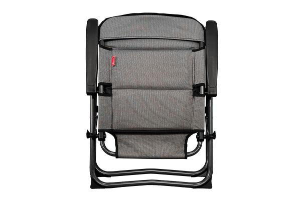 The seat is padded with 1.5 cm of foam and upholstered with durable polyester with a PVC coating, providing great sitting comfort and easy maintenance. The powder-coated aluminium frame (Ø25 mm) makes the chair stable yet easy to handle and fold away. The Nanna chair is available in Light Grey, a colour that suits most camping settings with its simple and modern look.