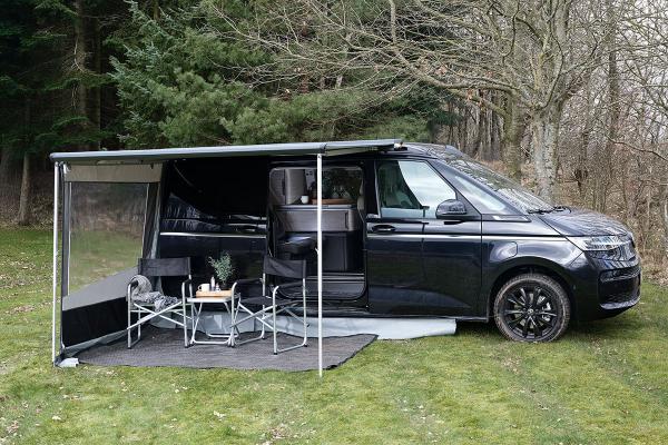 Acquisto aggiuntivo: Per un ulteriore riparo, puoi combinare Van Side e Van Front per creare uno spazio esterno completamente chiuso sotto il tendalino srotolabile del tuo campervan.