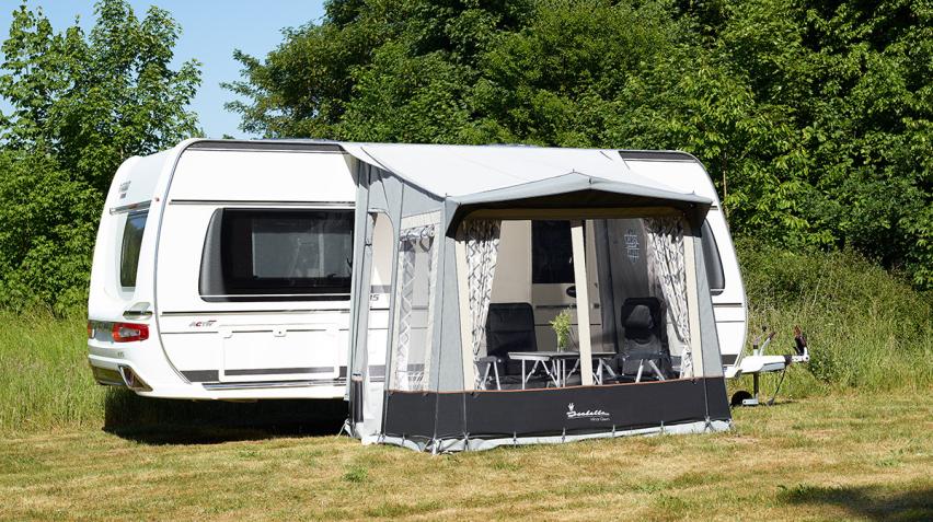 Compacte en slimme voortent voor caravans, campers en bussen.