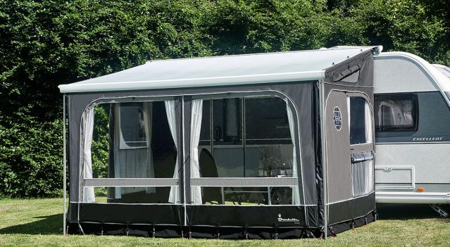 Buddy är ett hållbart och snyggt markistält som är utformat för att monteras på husvagnens markis för att ge både lä och skugga utanför husvagnen.