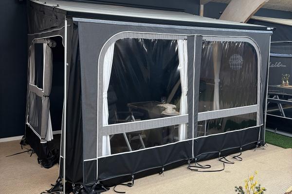 The Buddy front panel zips directly onto the Buddy side panels, allowing you to create shelter or retain warmth on a slightly chilly day. The large front windows give you an uninterrupted view of your surroundings. The windows can also be zipped down and opened to form a veranda solution using the supplied veranda pole. The front panels are available in five different widths (270, 320, 370, 420 and 470) and are suitable for wind out canopies from 3 metres and up.
